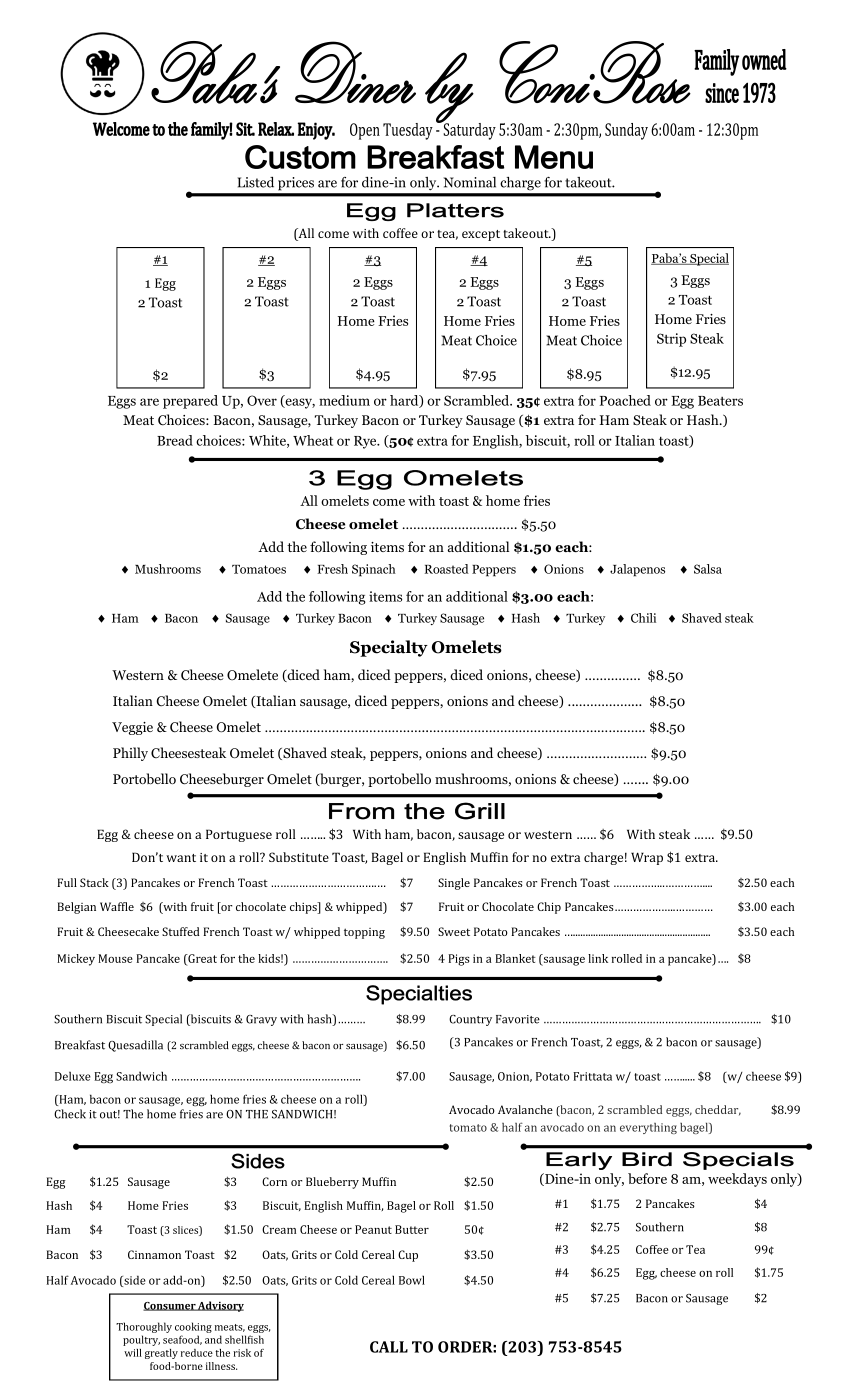 Sunday (Breakfast Only) 6:00 AM - 12:30 PM